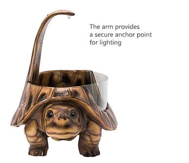 So what makes the Vividarium® Tortoise Home special? There are a lot of distinctive characteristics, indicating how much thought went into its creation, although it is its appearance that is most striking, when you see one of these units for the first time, compared with what has been on the market previously. “Each unit is hand-finished, with stunning air-brushed glossy paintwork, so every one is as individual as a fingerprint,” says Les. “These enclosures are manufactured from lightweight resin, which means they are easy to lift and manoeuvre, as well as being waterproof. They’re easy to clean and won’t rot either, giving them a long lifespan.” The flexible nature of the design means that any suspended style of basking lamp, or clamp lamps that can be attached to the side of the enclosure, can be used with it. The unit comes complete with a metal clip that attaches to the upper shell, from which the lamp can be suspended. This adaptable system means that you can choose your own lamp or lamps as required, to provide both heat and vital ultraviolet lighting. The appearance of the unit is not spoilt either by trailing electrical wires. These can be tucked away neatly into the cable clamps fixed on the rear of the Tortoise Home, indicating the attention to detail that has gone into the design.